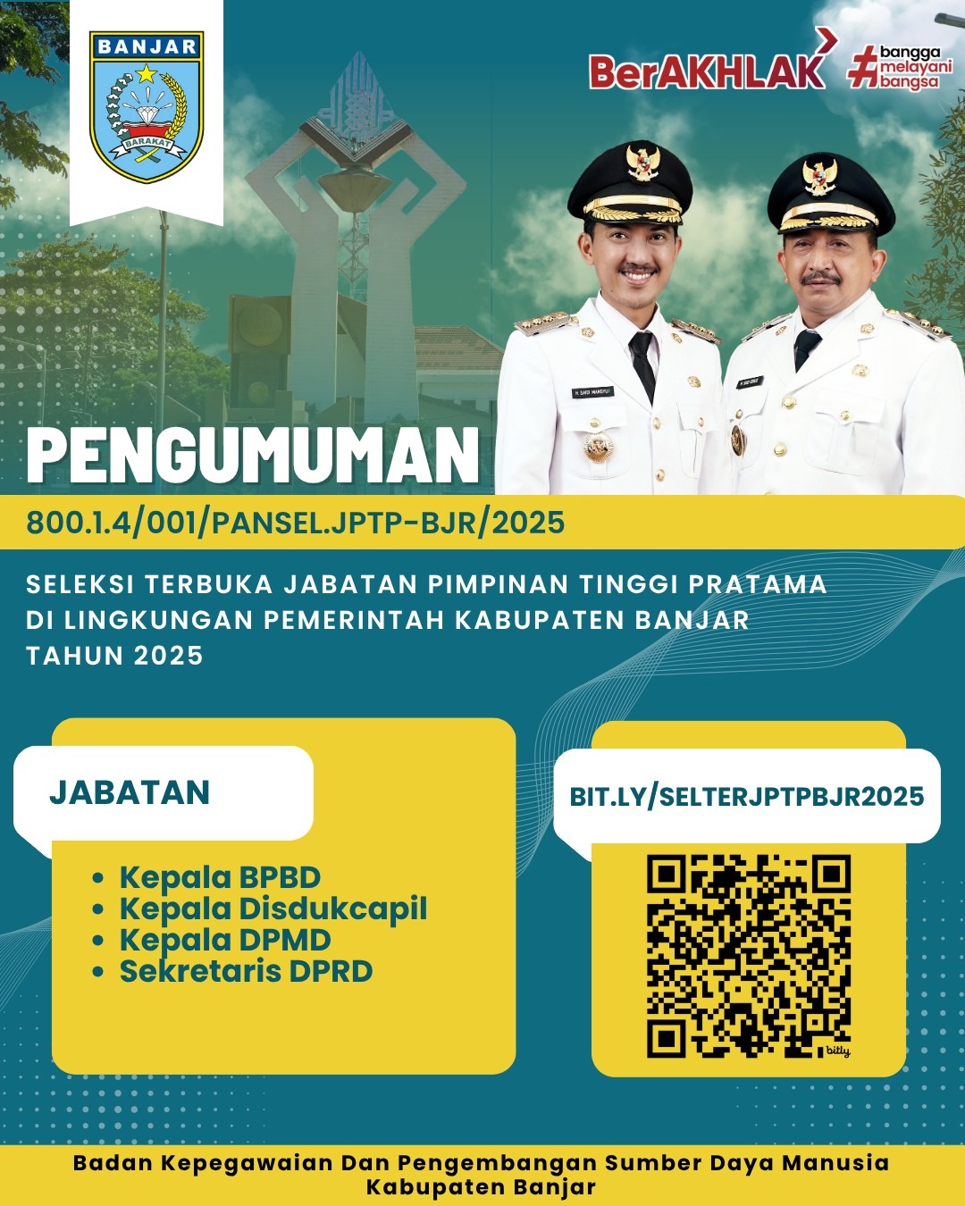 PENGUMUMAN SELEKSI TERBUKA PENGISIAN JABATAN PIMPINAN TINGGI PRATAMA DI LINGKUNGAN KABUPATEN BANJAR TAHUN 2025